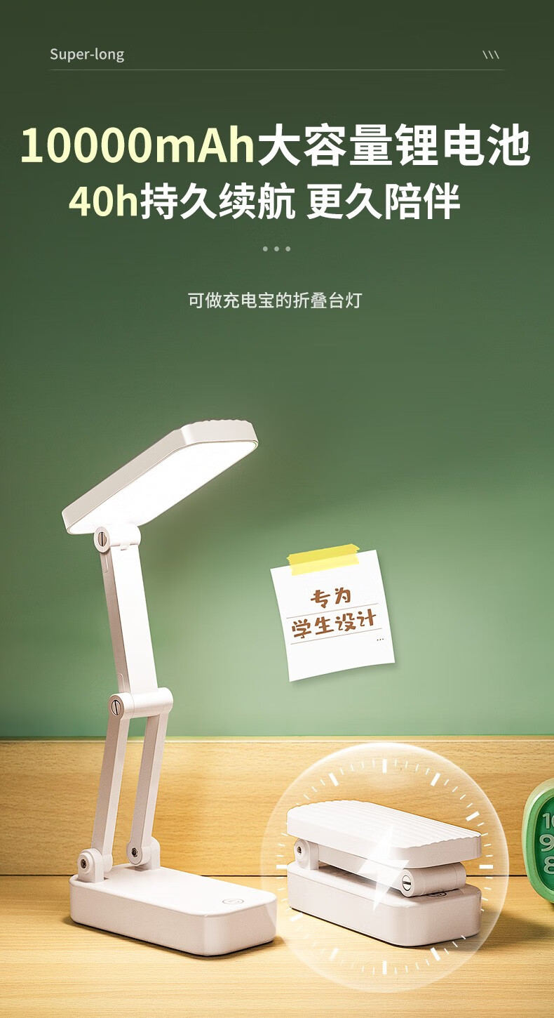 商品名称:万火充电台灯学习护眼台灯宿舍大学生护眼灯折叠小台灯宿舍台灯长续航 折叠台灯+调光调色温+充电宝